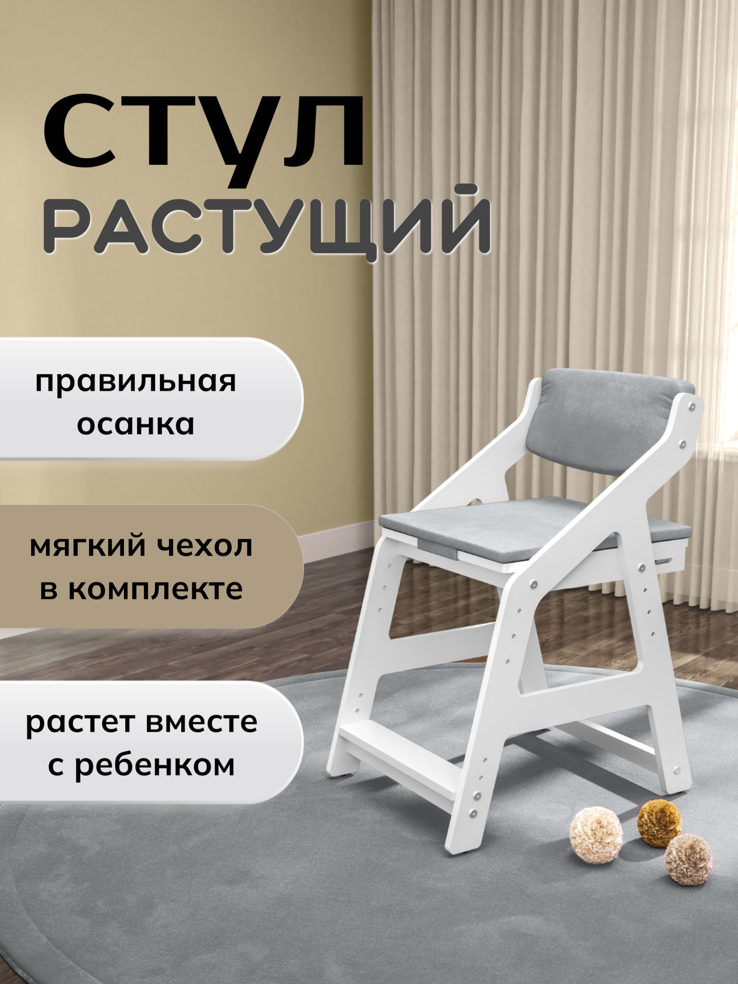 Растущий стул Олива — идеальное решение для активных и растущих детей, обеспечивающее комфорт и поддержку на каждом этапе их развития!