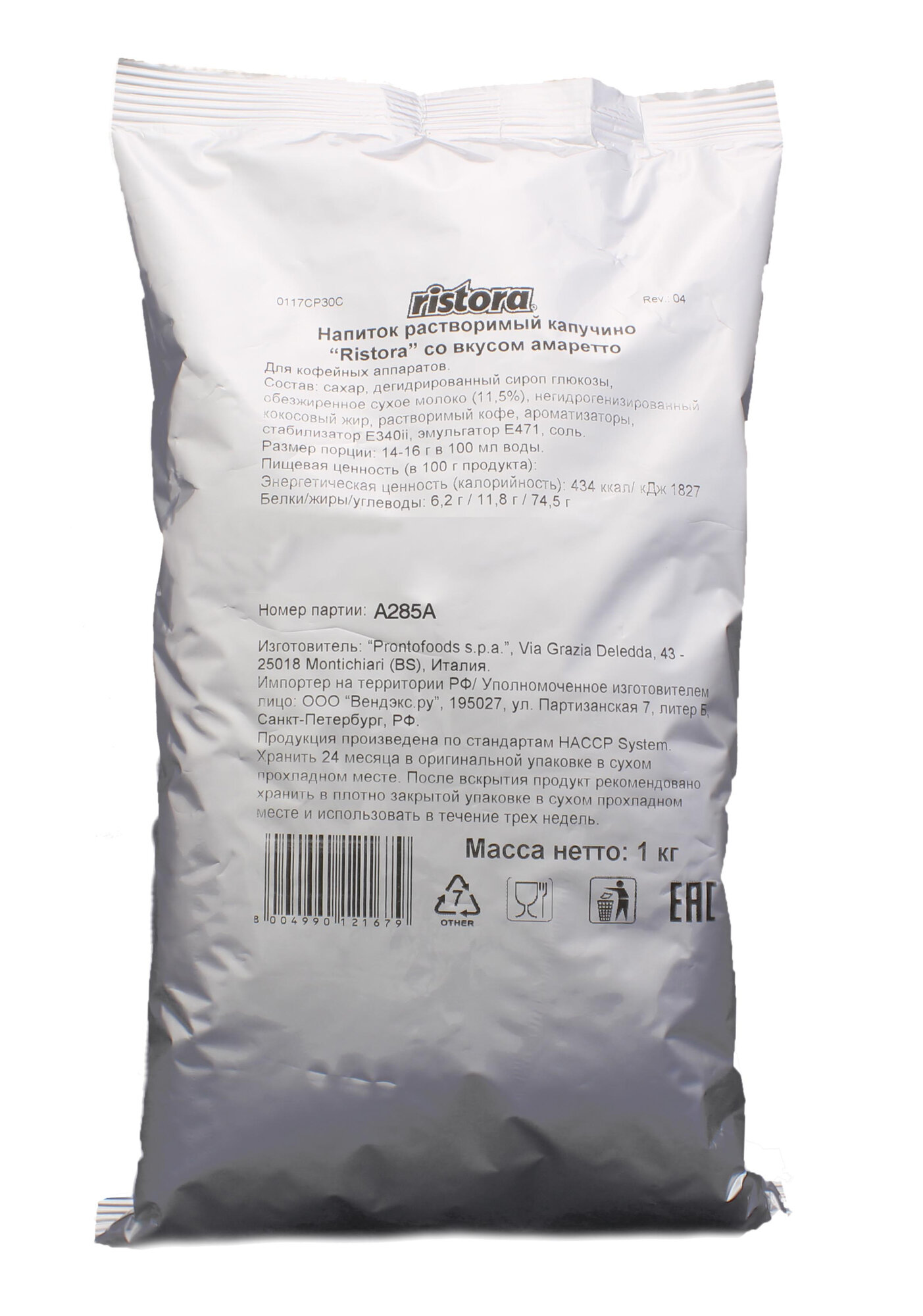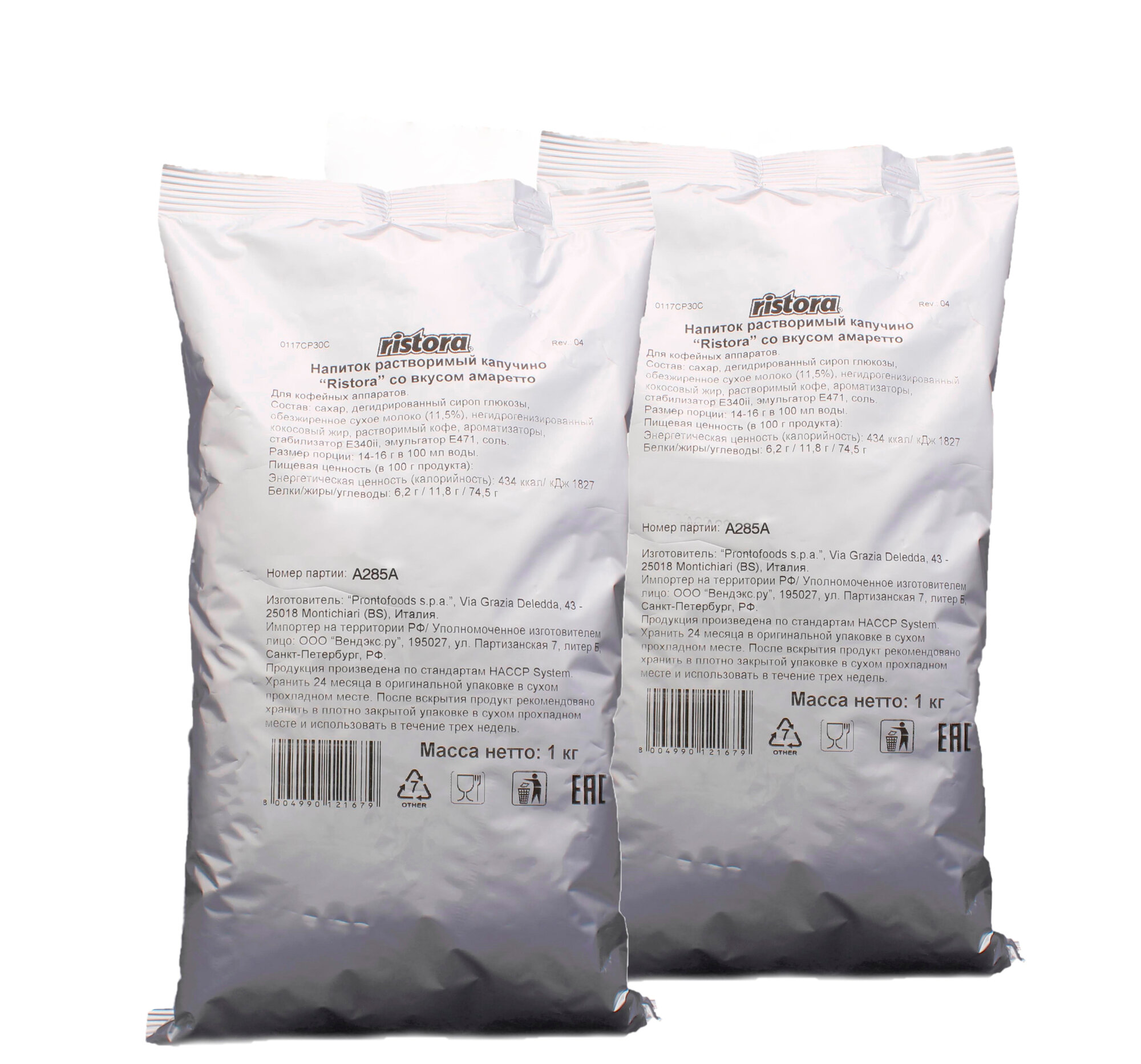 Растворимый капучино Ristora со вкусом амаретто (2 пачки по 1кг.): сравнение цен, характеристики, фото, актуальное наличие и цены.