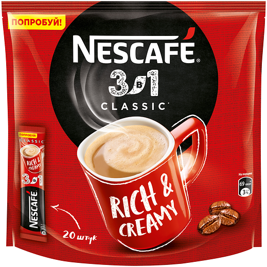 Упаковка 20 штук Кофейный напиток Nescafe 3в1 Классик (14,5г х 20)(400 пакетиков) Россия: сравнение цен, характеристики, фото, актуальное наличие и цены.