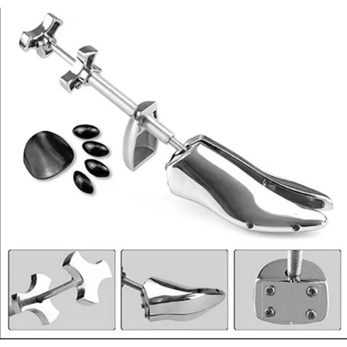астяжка металлическая Мужская с металлическим винтом. Представляем Вашему вниманию растяжитель для обуви, устройство, которое сделает Вашу жизнь более комфортной сэкономит Ваш бюджет. Диапазон растяжки с насадкой для мужской- от 21 до 31,5 см. Расстяжитель отлично справляется со своей задачей, делая вашу прогулку комфортной и удобной. При поэтапном раскручивании винта растяжка материала в длину, при раскручивании ручки в форме сердца-в ширину до 1 сантиметра. В комплекте есть 4 насадки для дополнительной растяжки в зоне пальцев ног и боковых косточек- это настоящее спасение для людей, имеющих вальгусную деформацию стопы, также в комплекте 2 накладки для растяжения в области подъема. Растягиватель для кожаной, замшевой и текстильной обуви имеет надежный механизм и насадки распорки, выполненные из прочного и противоударного ABS пластика. Колодки растянут подростковую, взрослую, кроссовки и туфли, балетки и ботинки. Переложите болезненную разноску, коррекцию и придание нужной формы и размера для тесной и неудобной обуви на это приспособление. Перед его использованием желательно обработать ботинки специальным спреем для смягчения материала или простой водой, чтобы процесс растяжки происходил быстрее. Винтовой расширитель отлично фиксирует на себе нужную форму насадки с помощью винтов, входящих в комплект набора. Мы отправляем набор в прочной коробке, так вы будете уверенны, что Ваш заказ доедет до пункта выдачи целым и в полной комплектации. Ваши ноги скажут Вам спасибо за жизнь без боли и натирания!