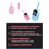 Игровой набор детская рация - это игровой модуль, похожий на обычную рацию. Работает он точно по такому же принципу и дает возможность общаться. С помощью раций дети играют в самые захватывающие ролевые игры. Очень удобно с такой рацией держать связь с ребёнком в школе и во дворе недалеко от дома - связь бесплатная, работает на расстоянии до 3км. Будьте всегда на связи с Вашим ребёнком! Например, в строителей, пожарных, геологов, моряков, спасателей или полицейских. Детский водонепроницаемый 8-канальный двусторонний приемопередатчик пригодится вам не только для игры. Во многих случаях рация лучше мобильного телефона, так как дает возможности для бесплатного общения, от нее меньше вредных излучений, она крепче смартфона, и ее сложнее разбить. Рация очень проста в использовании. Благодаря встроенному аккумулятору, для работы устройства достаточно его зарядить. Разъм зарядки Type-C с проводом зарядки в комплекте. Детские рации отлично подходят как для использования в помещении, так и для игр на открытом воздухе, а также на прогулках, в походах и т. д. Позволяют поддерживать связь друг с другом на расстоянии до 3 км. Прекрасный подарок на День Рождения, выпускной, Новый год и любой другой Праздник. Можно использовать как радионяня.