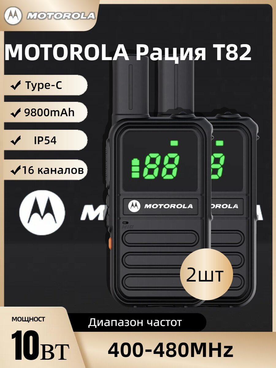 Рации Motorola T82, 2 шт, UHF, 9800 мА·ч, влагозащита IP54, встроенный фонарик: сравнение цен, характеристики, фото, актуальное наличие и цены.
