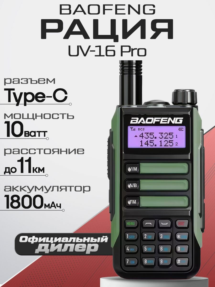 Купить Рация Baofeng UV-16 Pro 10W, UHF/VHF, разъем TYPE-C, Цвет Зеленый с доставкой по всей России. Рация Baofeng UV-16 Pro 10W, UHF/VHF, разъем TYPE-C, Цвет Зеленый: сравнение цен, характеристики, фото, актуальное наличие и цены.