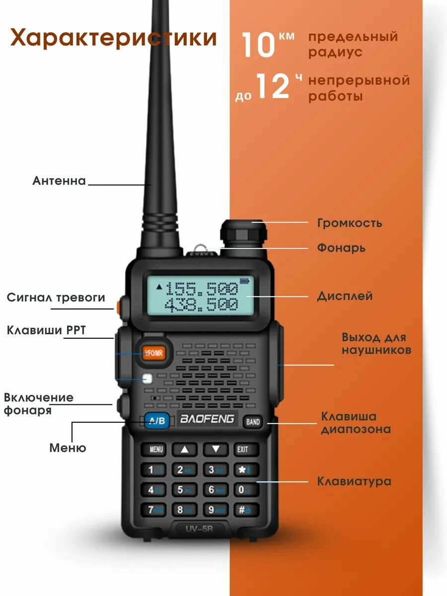 Рация Baofeng UV-5R, ЖК-дисплей, двухдиапазонная, до 16 ч автономной работы: сравнение цен, характеристики, фото, актуальное наличие и цены.