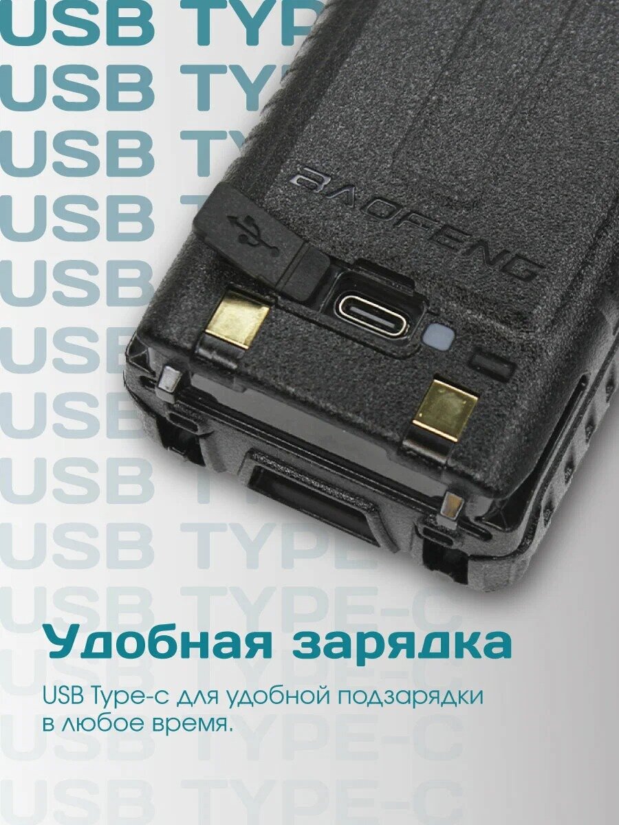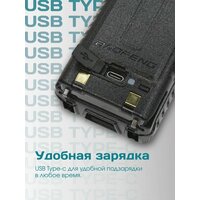 Рация Baofeng UV-5RH10W работает от литий-ионной батареи емкостью 2500 мАч, которая обеспечивает до 17 часов непрерывной работы.