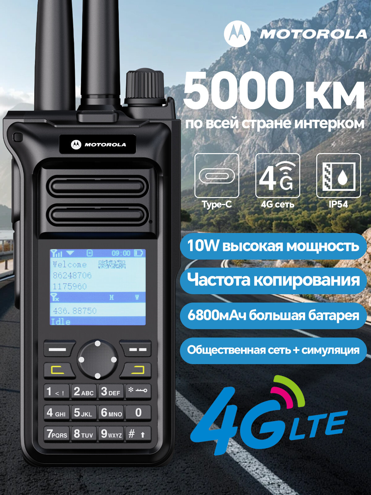 Рация MOTOROLA-GM-10 UHF+Сеть общего пользования 4G Мощность10Вт Бесплатная 1 SIM-карта