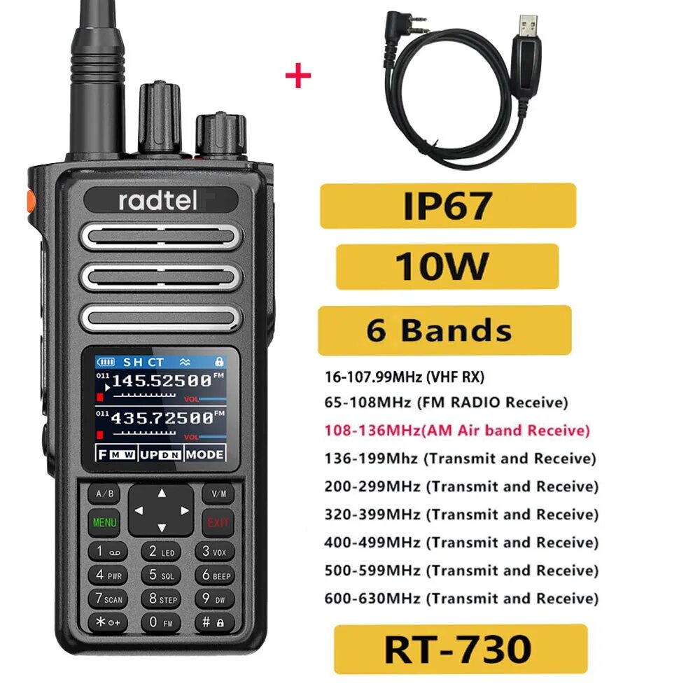 Radtel RT-730 портативная рация, black add cable, EURO: сравнение цен, характеристики, фото, актуальное наличие и цены.