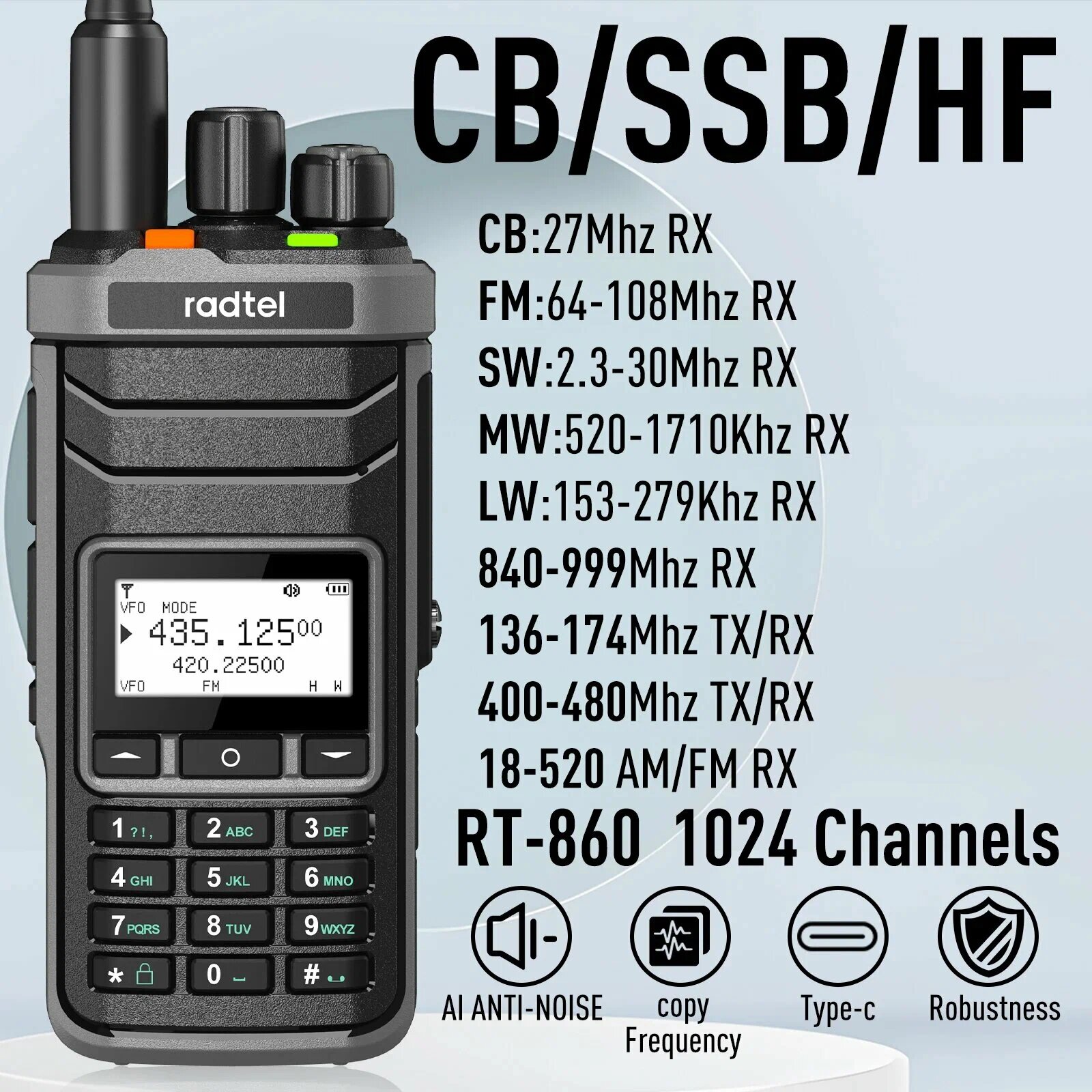 Рация RADTEL, 1024 канала, 2000 мАч, VHF/UHF/CB, дисплей, USB Type-C: сравнение цен, характеристики, фото, актуальное наличие и цены.