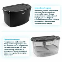 - Особенности: Полив осуществляется при помощи генератора тумана; Автономный "полив"; таймер; подсветка; Доп. лотки и надстройка
