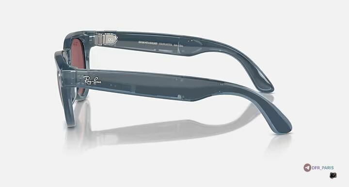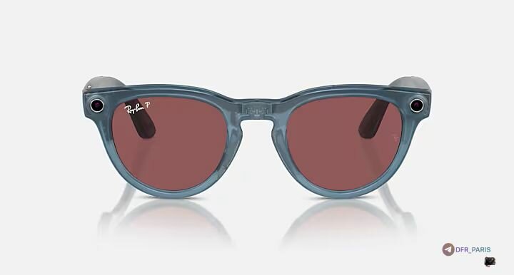 Умные очки Ray-Ban Met* последнего поколения. Модель - HEADLINER. Поляризованные линзы светло-красного цвета. Цвет оправы - прозрачный блестящий деним.
