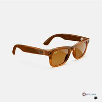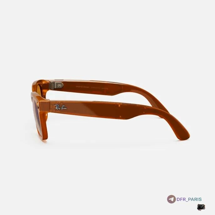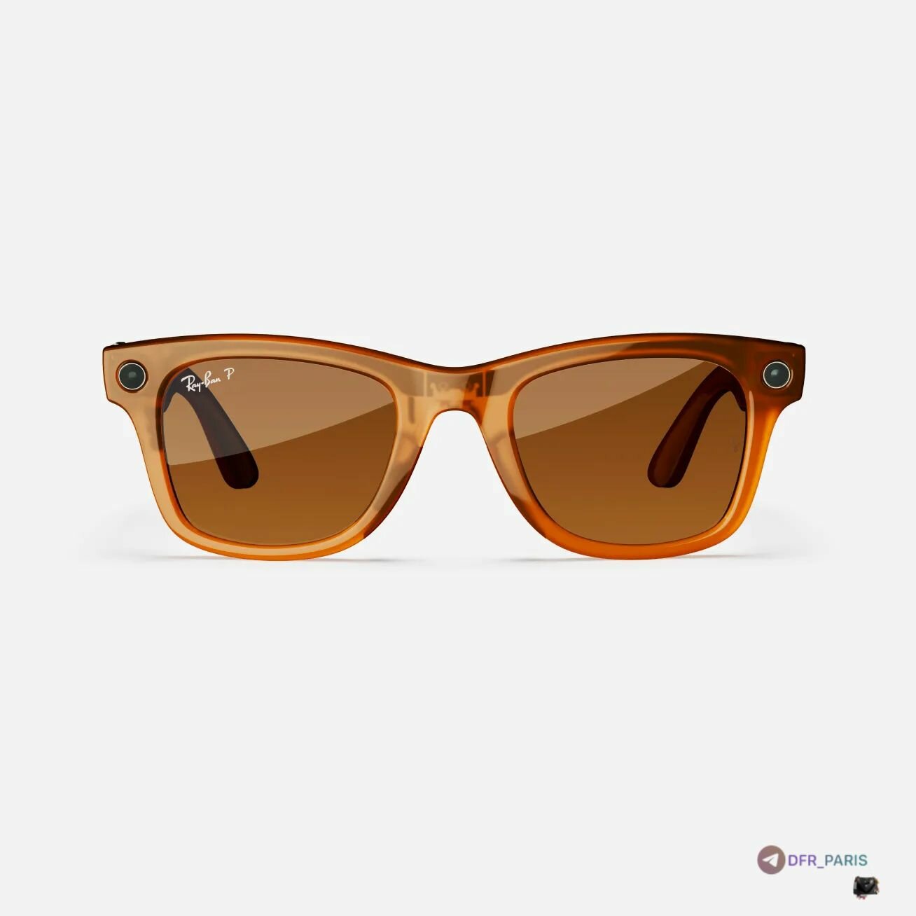 Умные очки Ray-Ban Met* последнего поколения. Модель Wayfarer. Поляризованные линзы коричневого цвета. Глянцевая прозрачно-карамельная оправа.