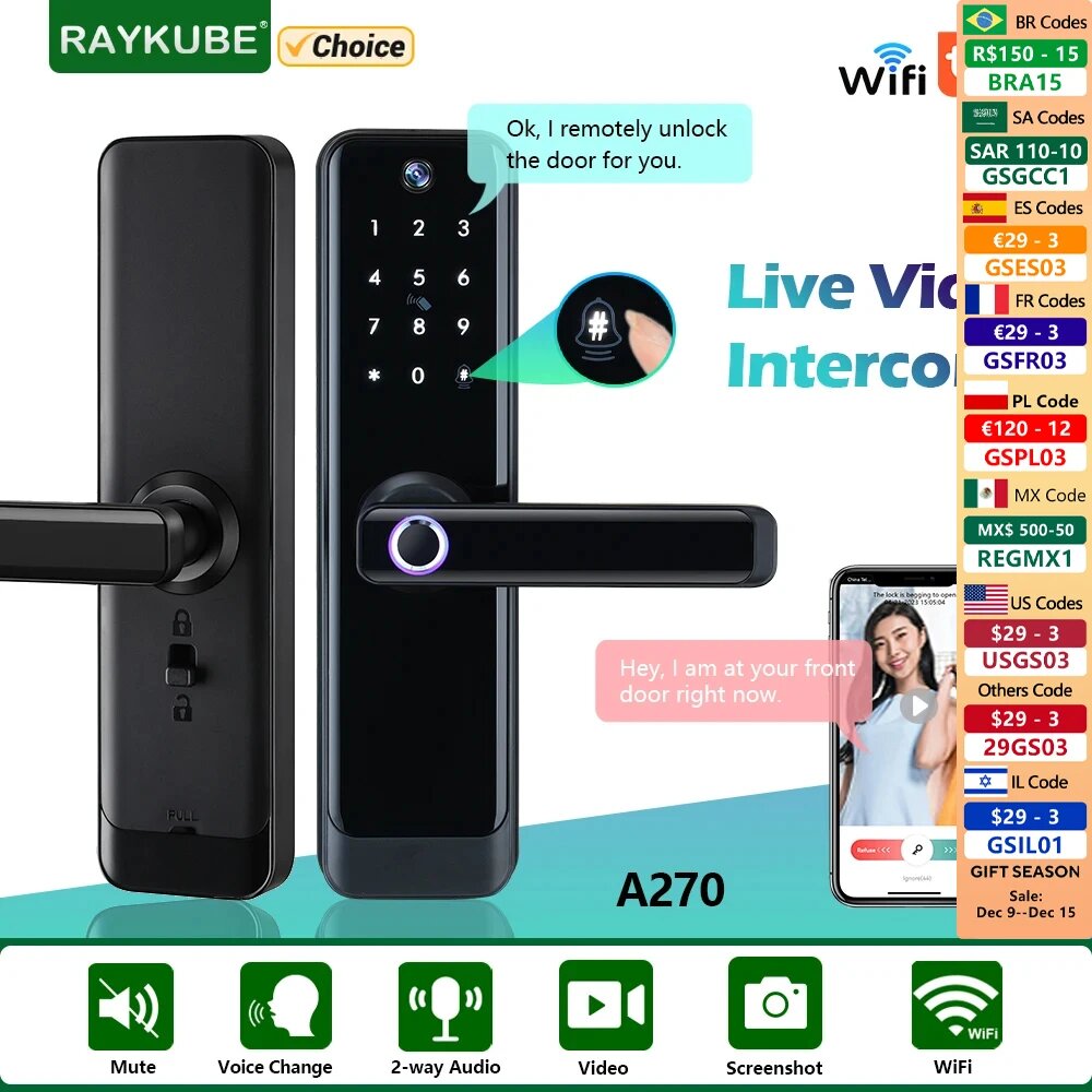Купить RAYKUBE A270 Умный дверной замок, With 60mm Latch, Black с доставкой по всей России.