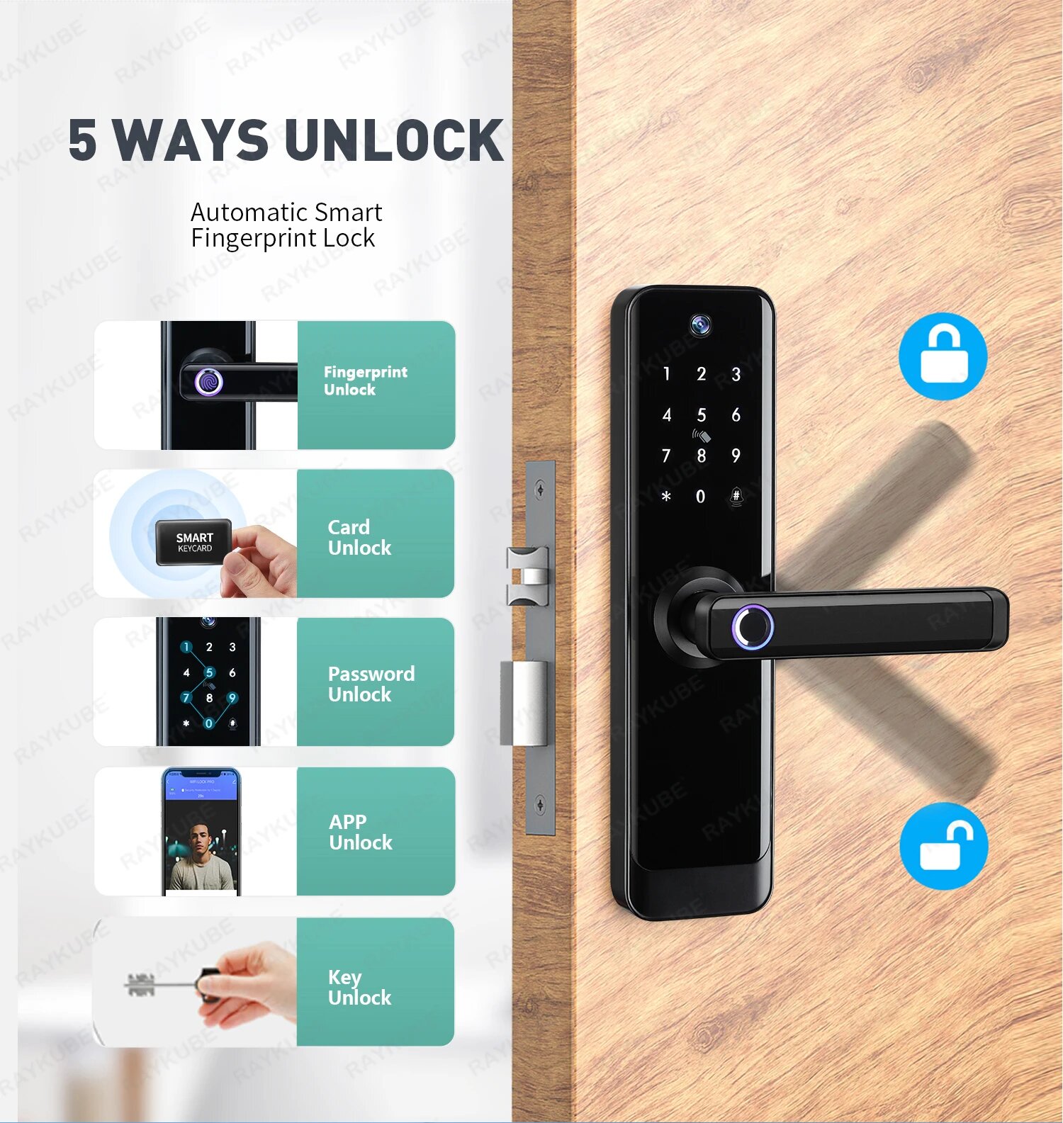 RAYKUBE A270 Умный дверной замок, With 60mm Latch, Black