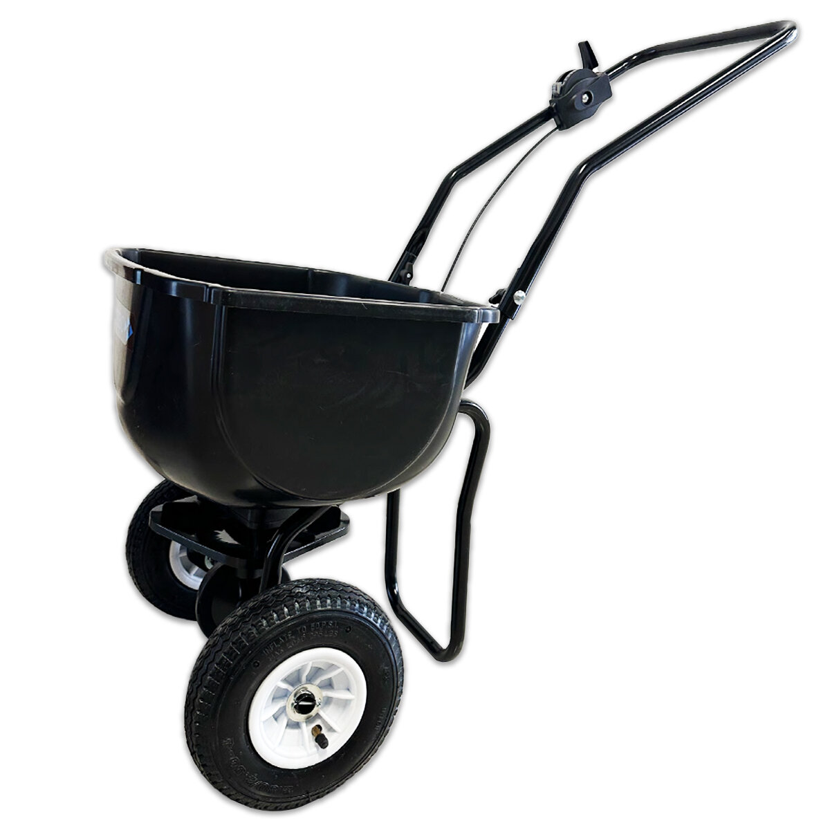 Преимущества: Очень простое и удобное применение. Пригоден для больших площадей и длинных дорог. Защитная сетка, предохраняющая устройство от попадания комкообразного материала и крупных камней. Устройство рассчитано на скорость движения 5 км/ч (быстрая ходьба). При уменьшении или увеличении скорости передвижения рисунок и дальность разброса меняется. Пневматические колеса 25,4 см с резиновыми шинами для хорошего сцепления с дорогой даже при движении по снегу или по льду. При транспортировке или в процессе наполнения резервуара отверстие дозатора можно полностью закрыть. Чехол для укрытия резервуара в сырую погоду в комплекте. Большой, ударопрочный пластиковый контейнер для сыпучих материалов весом до 36 кг. Товар поставляется в частично разобранном виде.