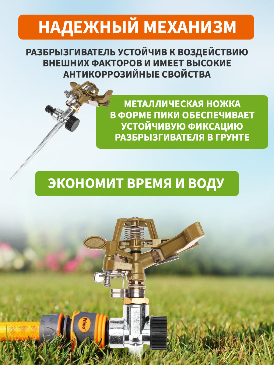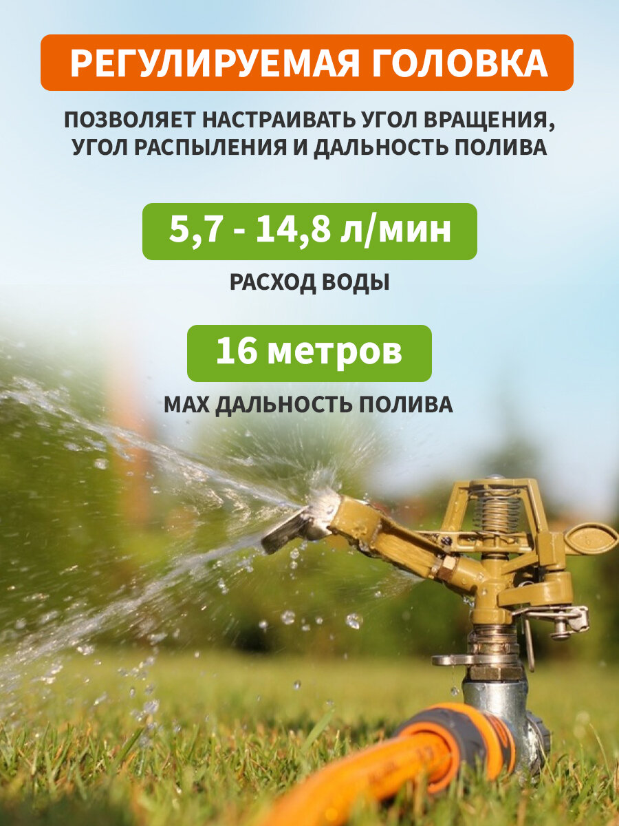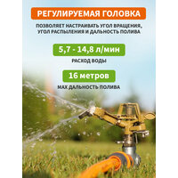 ✔ Регулируемый угол распыления – настройте полив под нужный участок (дальность до 16 м).