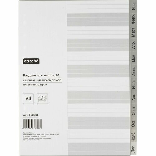 Разделитель листов пластиковый Attache (А4, на 12л, по месяцам) серый, 25шт.: сравнение цен, характеристики, фото, актуальное наличие и цены.