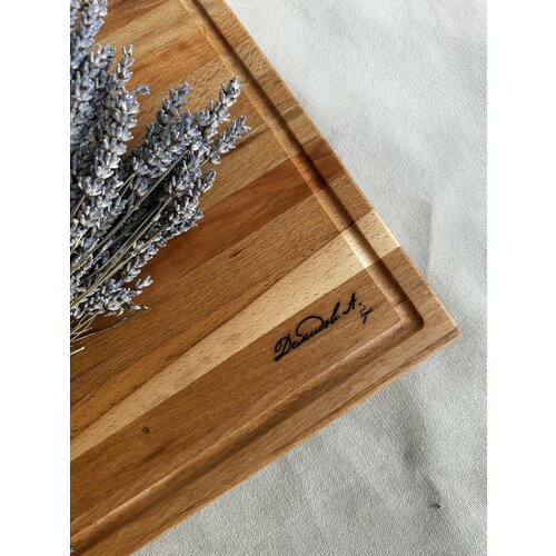 Бук - твердая порода древесины высокой плотности, устойчива к внешним воздействиям. Бук имеет гладкую ровную текстуру без крупных древесных пор в отличии от дуба, ясеня и карагача. Практичный материал для разделочных досок и досок для раскатки теста. Идеально подходит для дорогих кухонных ножей!