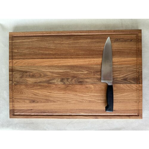 Разделочная доска прямоугольной формы из 100% массива дерева - идеально подойдёт для резки мяса, рыбы, овощей и фруктов. Резьба по периметру изделия препятствует скоплению излишней жидкости на рабочей поверхности. Рисунок древесины уникален и может отличаться в разных изделиях.
