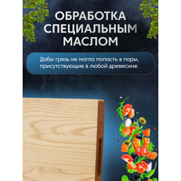сделана из центральных участков ствола дерева. Обе стороны доски годятся для использования. Благодаря идеально точному соединению деревянных фрагментов, доска лишена трещин и зазоров, в которые могла бы попасть грязь. Соответственно, ее легко мыть, и она безопасна для здоровья. Для долговечности доска покрыта органическим защитным маслом, дабы грязь не могла попасть в поры, присутствующие в любой древесине.