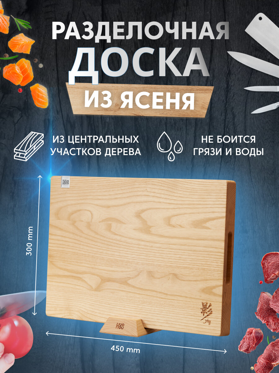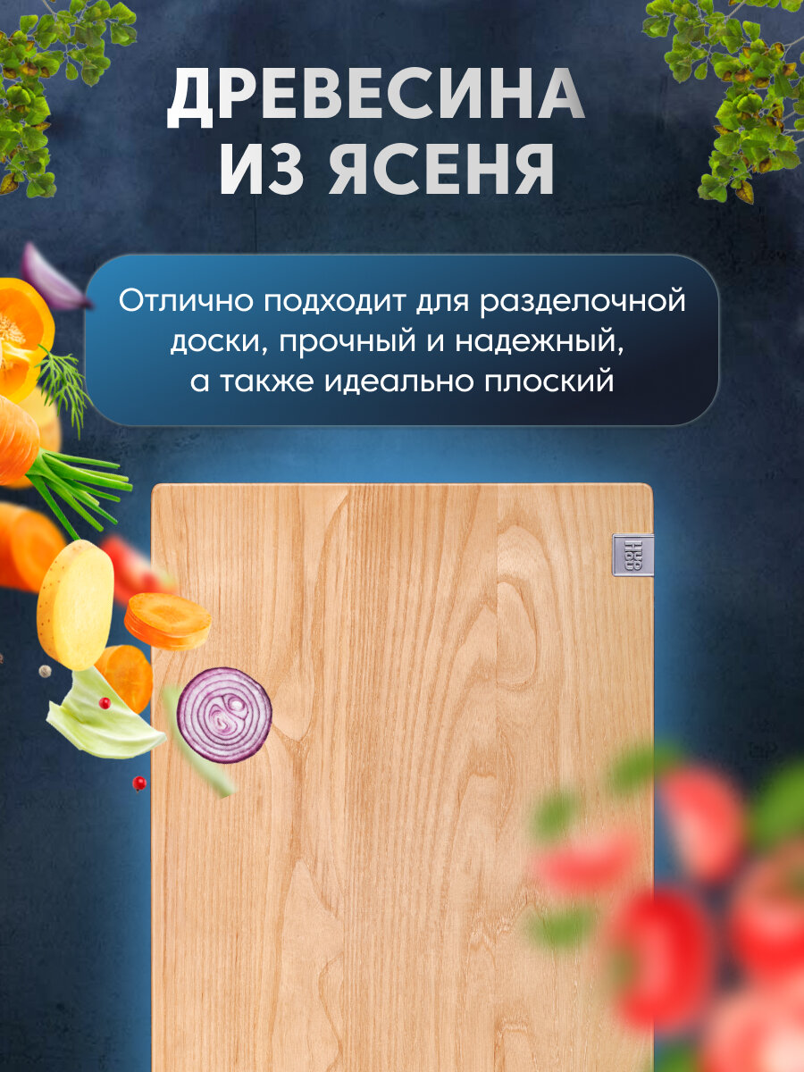 Выбранный материал (древесина ясеня) отлично подходит для разделочной доски, он прочный и надежный, а также идеально плоский. Доска HU0256