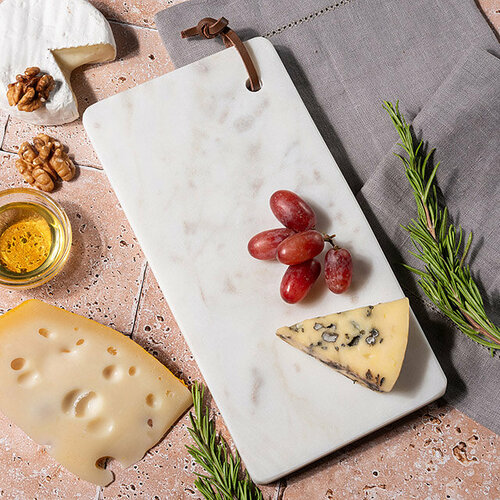 Сервировочная доска Artemis - это ода мрамору. Никаких рельефных узоров. Простейшая геометрическая форма. Только натуральный белый камень с характерными вкраплениями, благодаря которому разделочная доска станет броским штрихом в интерьере любой кухни или столовой, и… все. Насладитесь безупречной, естественной красотой благородного камня и придайте застолью шик с доской для подачи Artemis!
