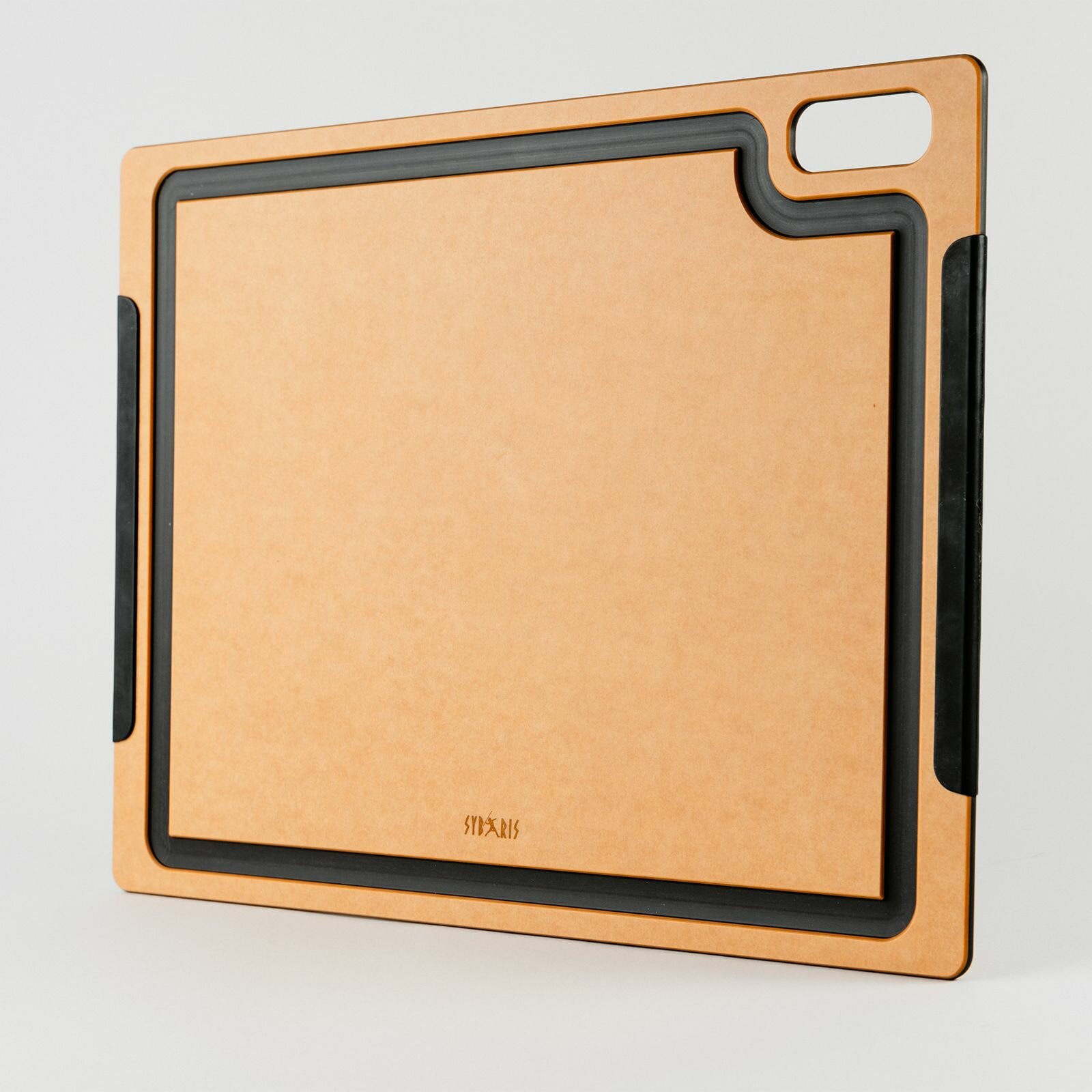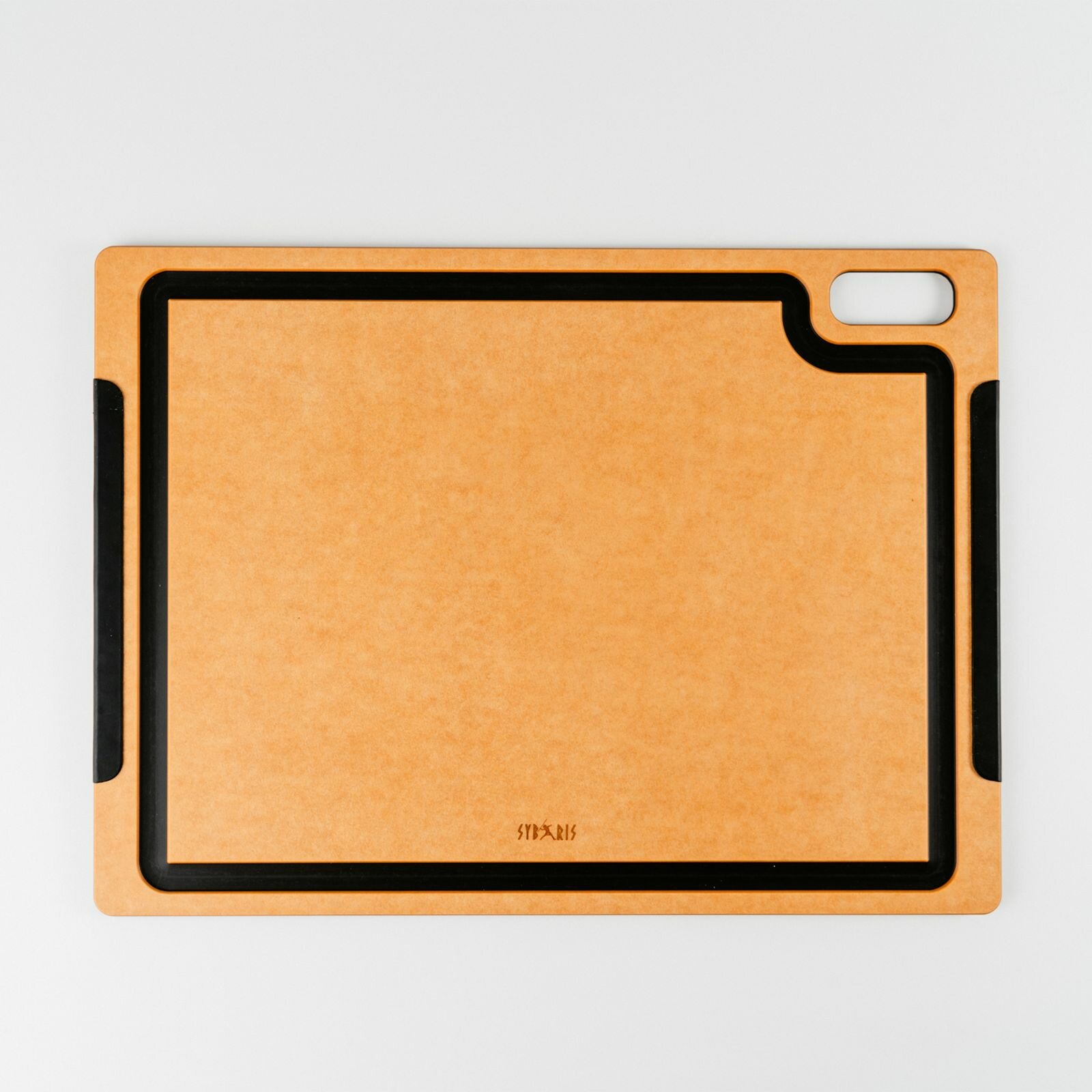 При изготовлении этих досок использована технология объемного распределения пигмента, поэтому сердцевина доски отличается по цвету от рабочей поверхности, а желобок выглядит контрастно окрашенным.