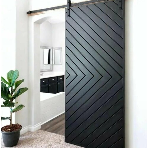 Раздвижная система в стиле Лофт/Loft используется для изготовления подвесных дверей в которых полотно движется по направляющей, закрепленной над перемычкой двери. Движение осуществляется благодаря двум тележкам, входящим в состав комплекта. Движение двери вдоль стены позволяет существенно экономить место. Стильный дизайн роликов раздвижной амбарной системы (Barn Door) не ограничивает применение комплекта только в помещениях с оформлением интерьеры в трендах Loft, но и позволяет использовать в помещениях с современным дизайном. Черное матовое покрытие всех элементов отлично сочетается с амбарной дверью любого цвета.