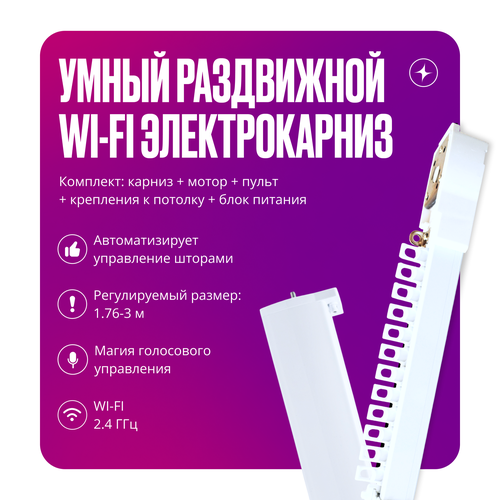 Умный телескопический электрокарниз для штор, WIFI+RF, автоматический привод с пультом, раздвижной 1,76-3 м: сравнение цен, характеристики, фото, актуальное наличие и цены.