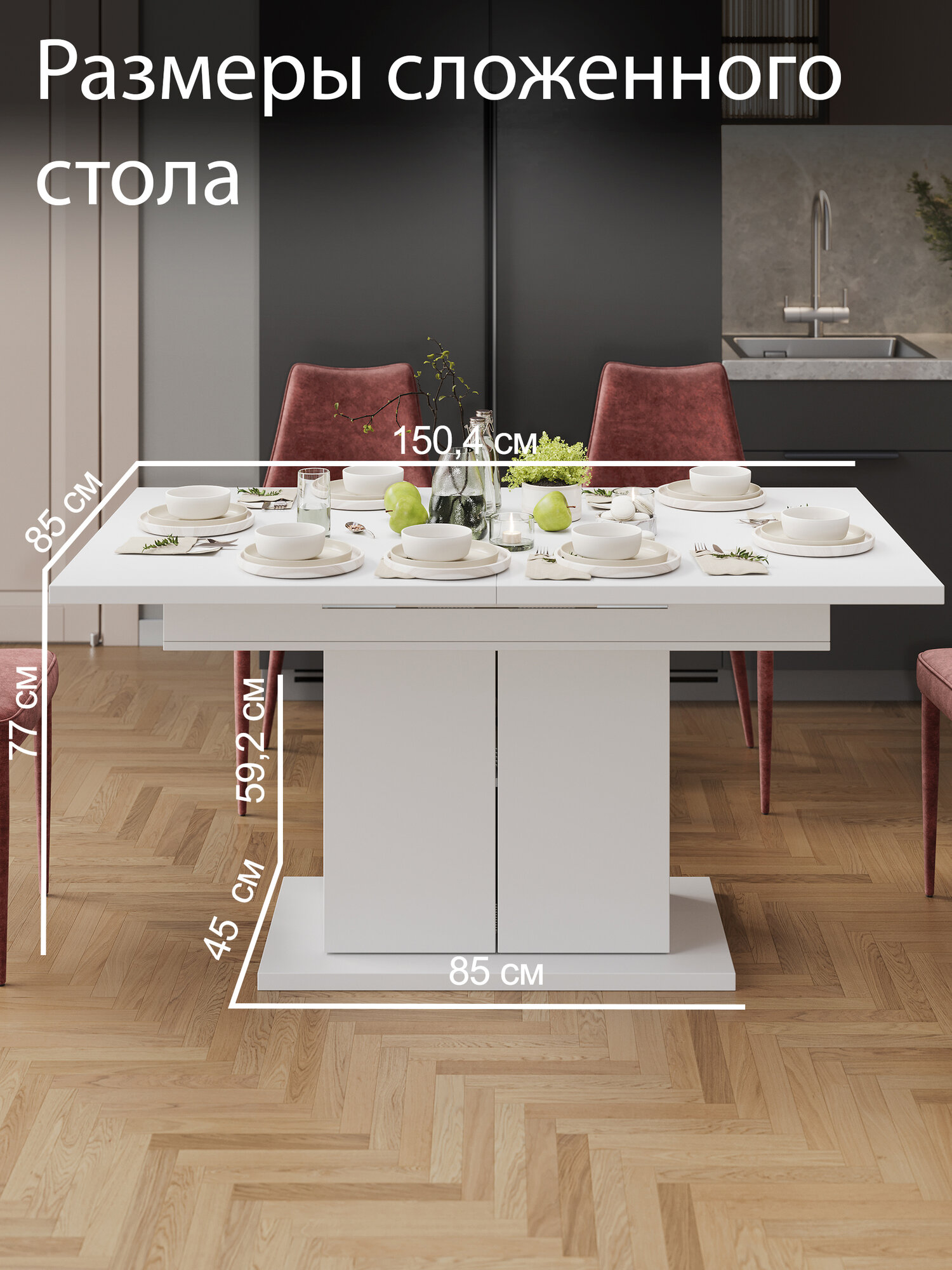 Раздвижной обеденный стол - идеальное решение для людей, которые часто любят принимать гостей, но стремятся сохранить больше свободного пространства на кухне или в обеденной зоне. Стол Тайлер представлен в уникальном современном дизайне и впишется в цвета любого интерьера, благодаря представленным расцветкам. Кухонный стол имеет ящик в его основании для хранения кухонной утвари, посуды и др. Размеры ящика в основании: в глубину - 26, 4 см, в ширину 59,2, в высоту - 59,2 см, высота между полками - 28,2 см. Ящик открывается с помощью механизма нажатия Push to Open. Механизм трансформации стола - синхронный раздвижной с цельной вставкой. Длина стола до трансформации -150,4 см, после трансформации - 201,4 см. За разложенный стол комфортно уместится 8 человек. Толщина столешницы - 22 мм, качественные материалы делают стол износостойким, способным прослужить многие годы - используется экологический безопасный ЛДСП высокого качества, кромка - ПВХ. Раздвижные столы, установленные на кухне, благодаря раздвижной конструкции обеденной плоскости, эффективно экономят пространство. Они вносят порядок и гармонию, удобство и практичность, являясь идеальным вариантом для малогабаритных комнат. Поставляется в разобранном виде. В комплекте идет схема сборки и фурнитура, все технические отверстия сделаны на производстве.
