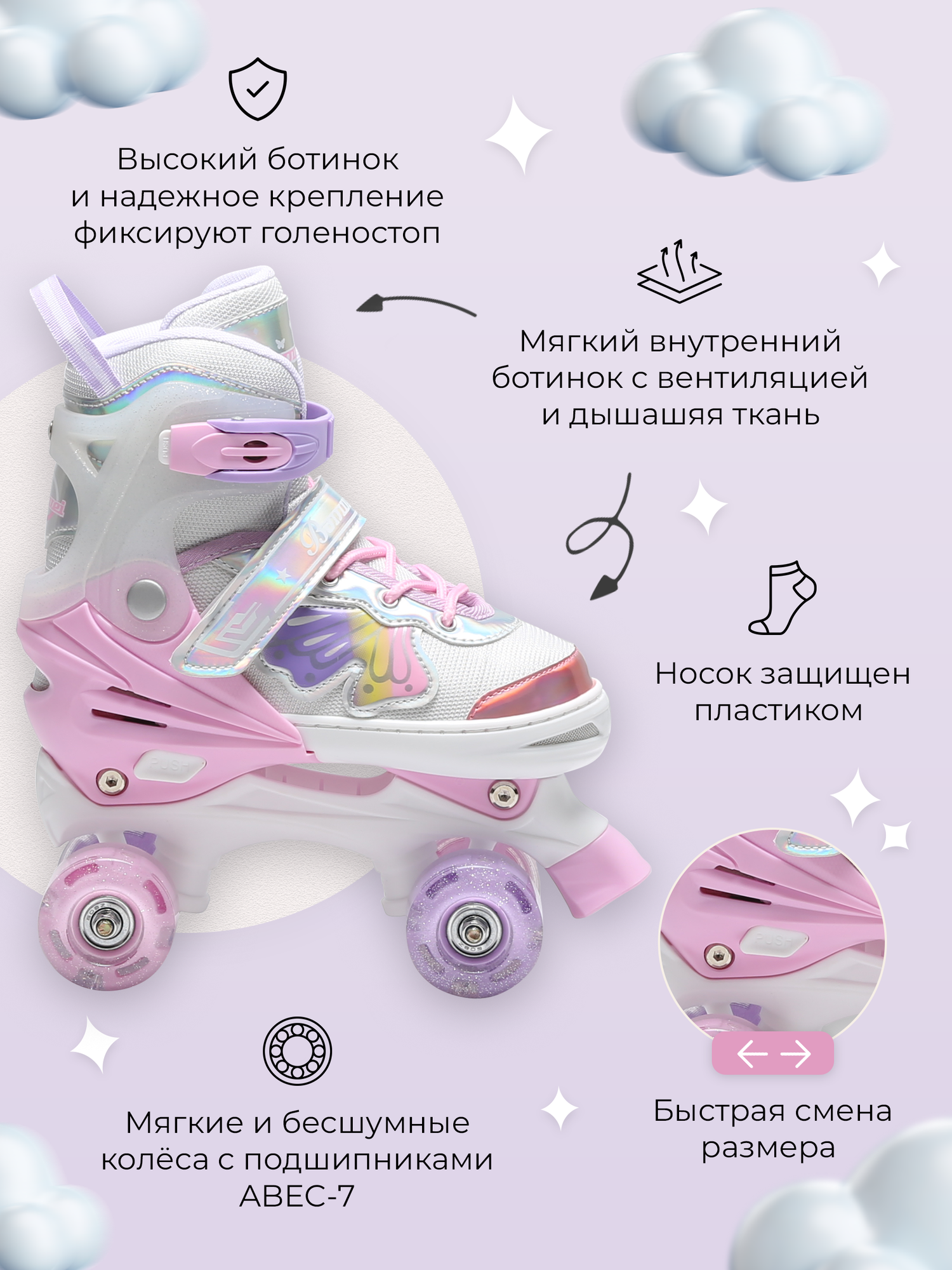 Детские раздвижные ролики квады Banwei Butterfly Pink – это идеальный выбор для юных любителей активного отдыха! Эти ролики сочетают в себе удобство, безопасность и современный дизайн, делая катание комфортным и увлекательным для детей.