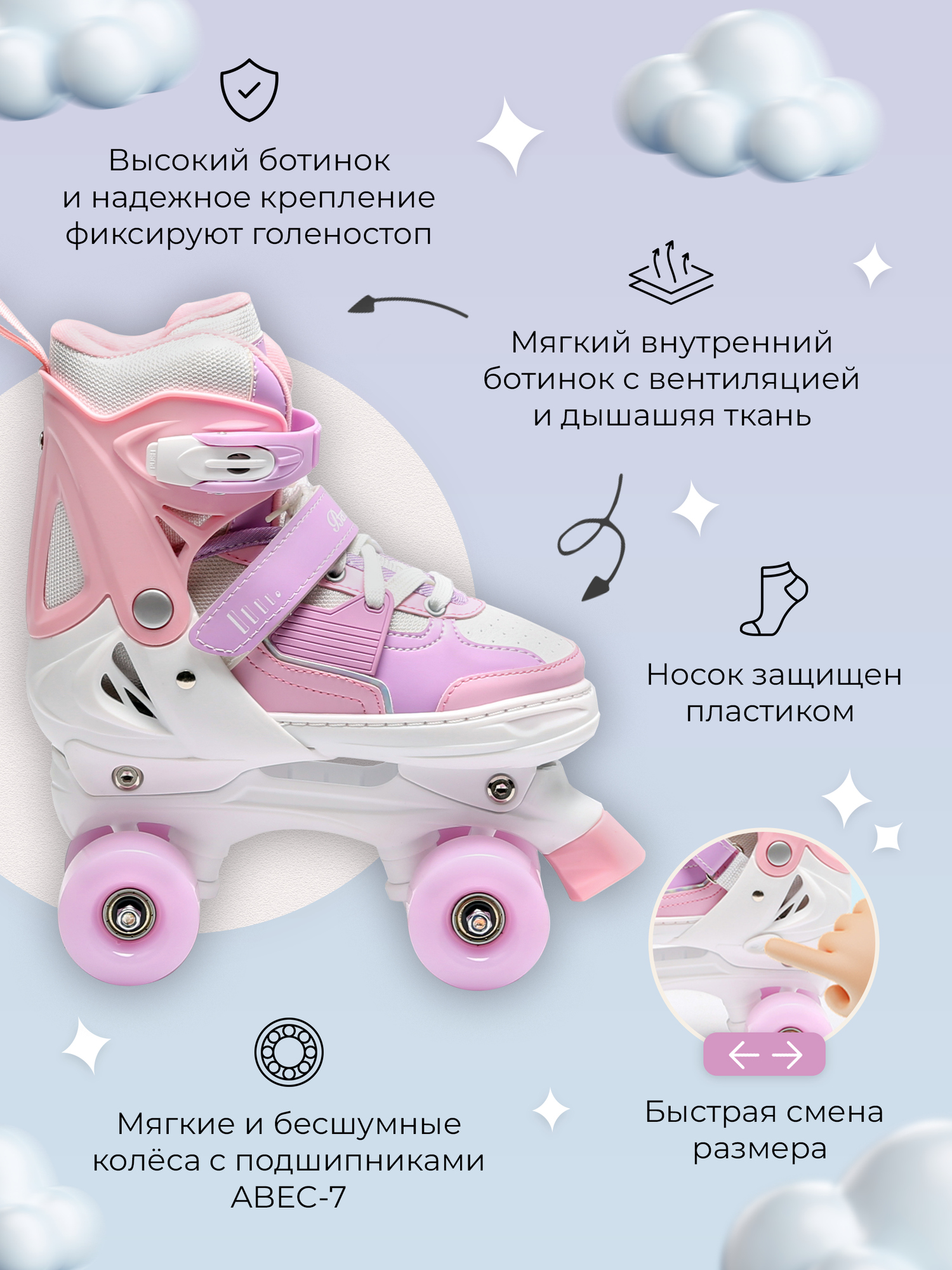 Детские раздвижные ролики квады Banwei Marshly Pink – это идеальный выбор для юных любителей активного отдыха! Эти ролики сочетают в себе удобство, безопасность и современный дизайн, делая катание комфортным и увлекательным для детей.