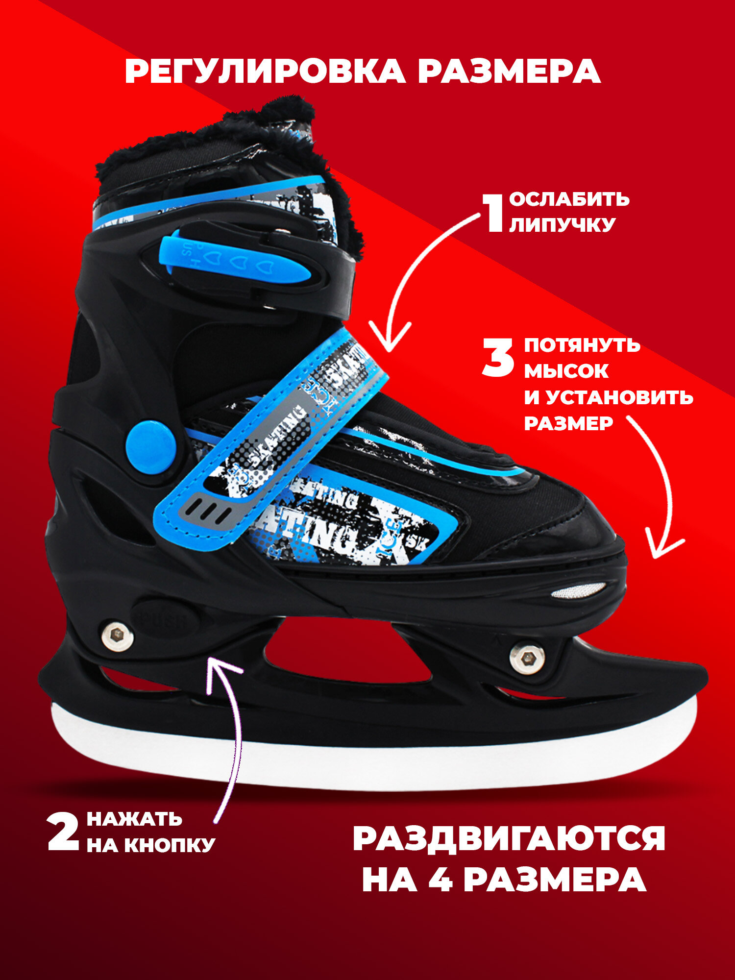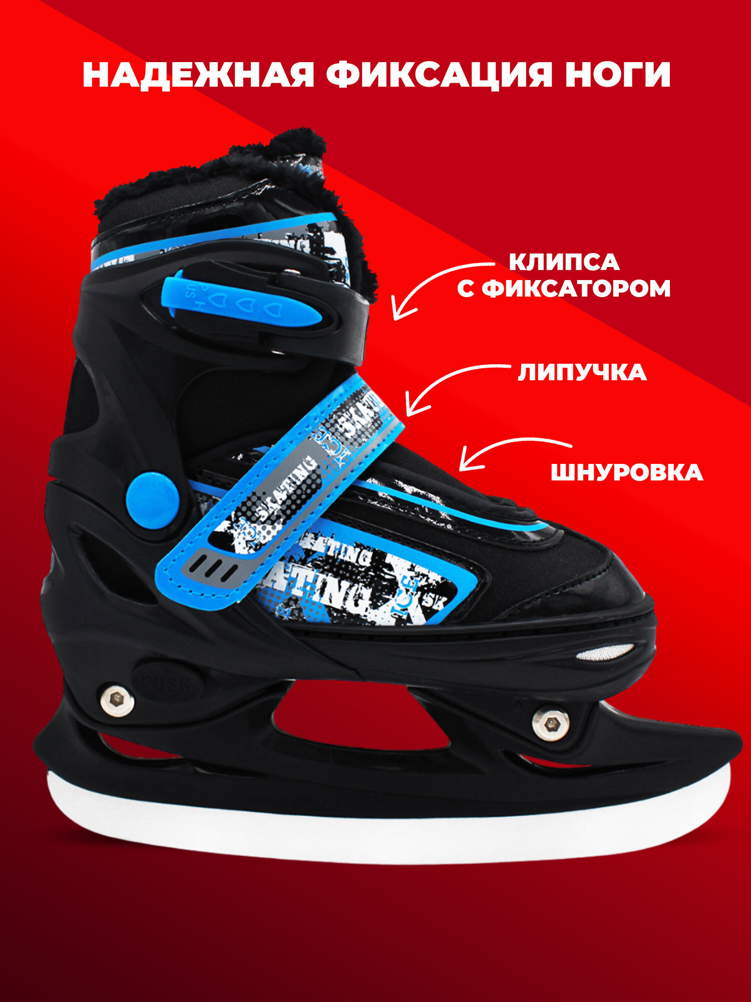 Купить Раздвижные ледовые коньки AC-SK5502 Blue (с мехом) с доставкой по всей России.
