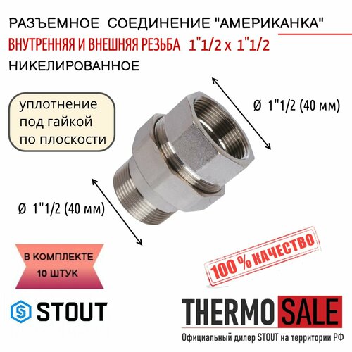 Купить Американка 1 1/2 разъемное соединение внутренняя / наружная резьба 10 шт никелированное уплотнение под гайкой по плоскости сантехническое STOUT ФУМ лента с доставкой по всей России. Американка 1 1/2 разъемное соединение внутренняя / наружная резьба 10 шт никелированное уплотнение под гайкой по плоскости сантехническое STOUT ФУМ лента: сравнение цен, характеристики, фото, актуальное наличие и цены.
