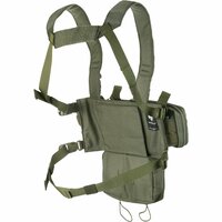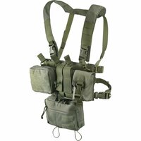 Наполнение жилета для тактического снаряжения позволяет носить фонарик или мультитул. Слева расположен подсумок на фастексе для радиостанции, а справа административный подсумок на молнии для документов, инструментов или других нужных вещей.