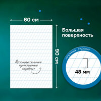 Разлиновка для школьной доски из гибкого магнита с разметкой в частую косую линию. Высота строки до вспомогательной пунктирной линии – 48 мм. Это одно большое полотно размера 90х60 см. Поверхность «Пиши-стирай» позволяет использовать разлиновку многократно. Писать необходимо исключительно маркером на водной основе (в комплект не входит). Стереть такую надпись вы сможете любой сухой или чуть влажной губкой, тряпкой или салфеткой. Для того, чтобы полотно прослужило вам долго, пожалуйста, внимательно изучите инструкцию по эксплуатации. Поставляется разлиновка в транспортировочной коробке из плотного картона.