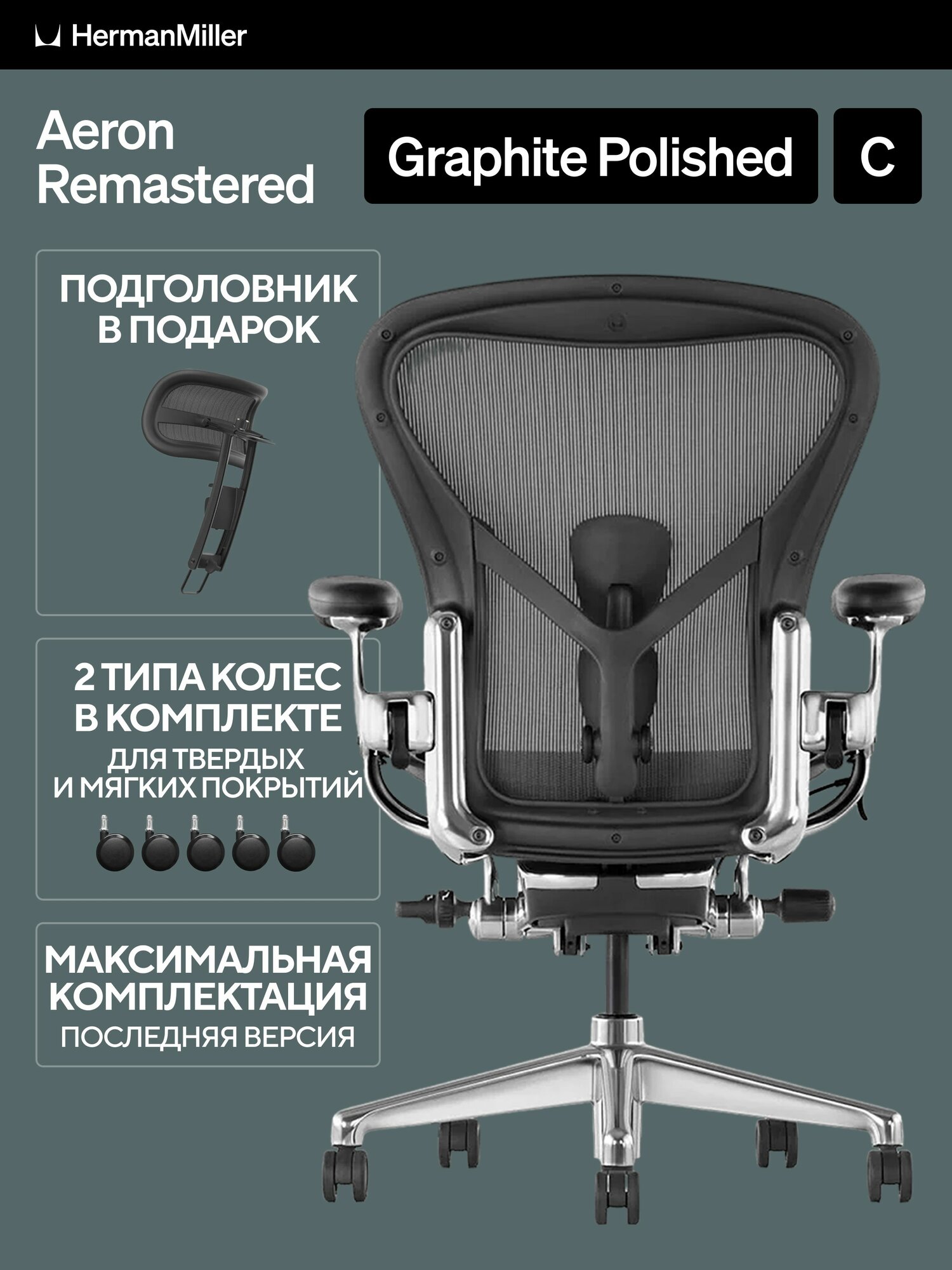 Купить Размер C, кресло Herman Miller Aeron, цвет Graphite Polished Aluminium с доставкой по всей России. Размер C, кресло Herman Miller Aeron, цвет Graphite Polished Aluminium: сравнение цен, характеристики, фото, актуальное наличие и цены.