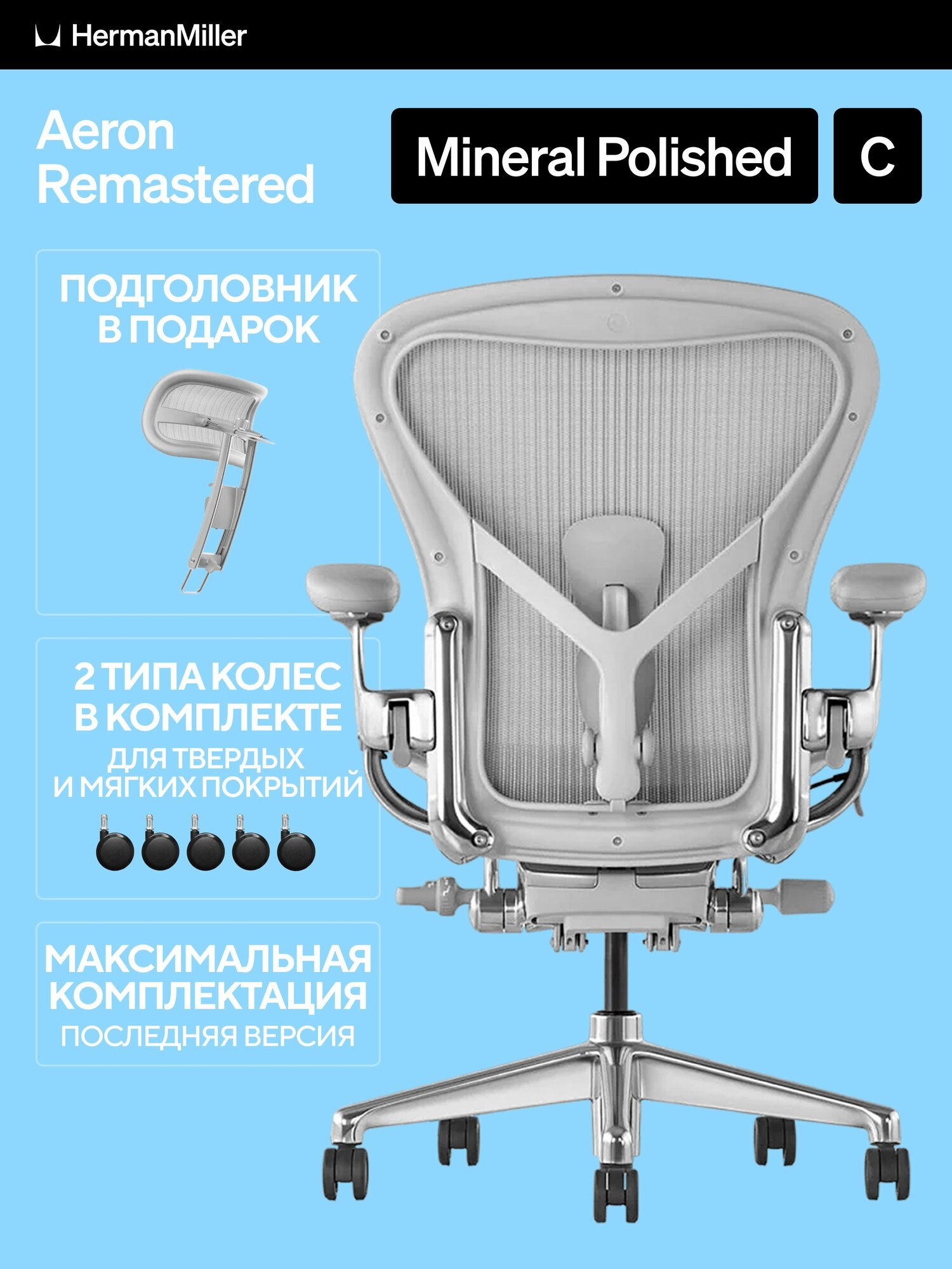 Купить Размер C, кресло Herman Miller Aeron, цвет Mineral Polished Aluminium с доставкой по всей России. Размер C, кресло Herman Miller Aeron, цвет Mineral Polished Aluminium: сравнение цен, характеристики, фото, актуальное наличие и цены.
