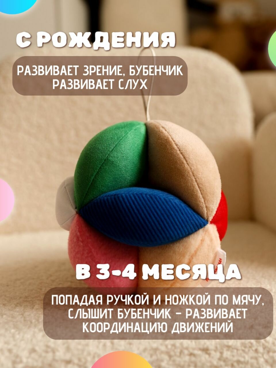 Мяч Такане от «рада мама чада» - одно из лучших развивающих пособий для ребенка первого года жизни.