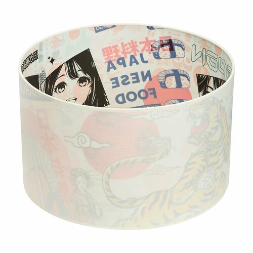 Абажур выполнен в технике коллаж. Здесь запечатлены различные японские образы: от классических до современных.
