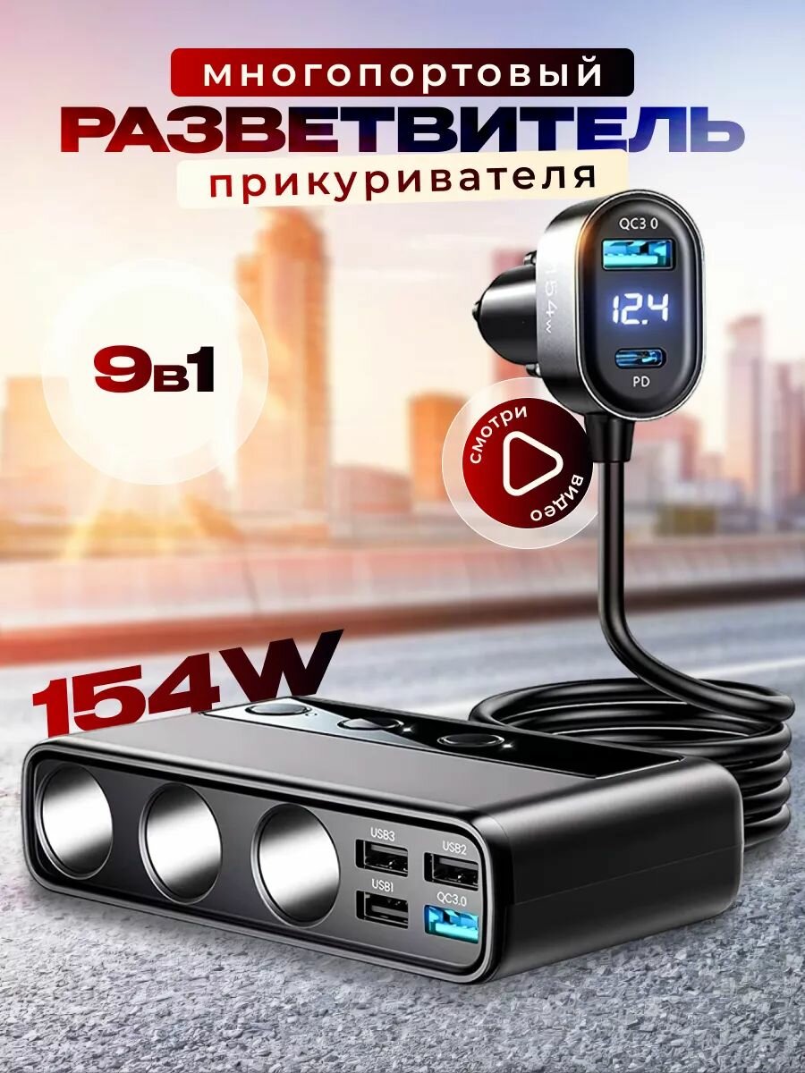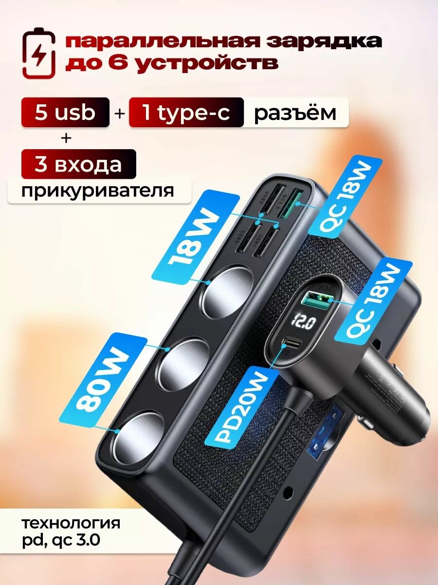 Разветвитель Joyroom JR-CCL01 139W 3 прикуривателя + PD 30W + 3USB черный