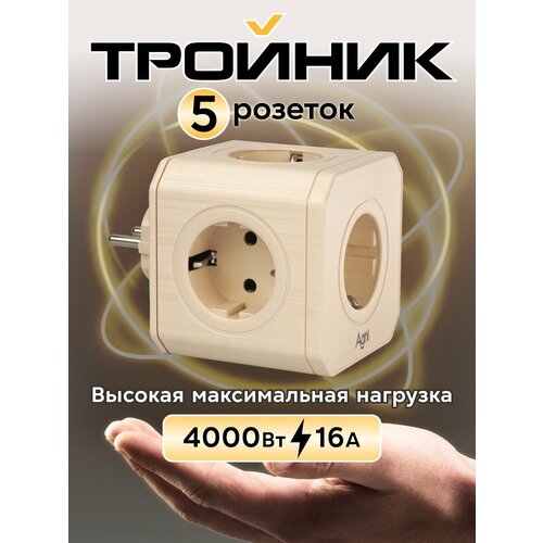 Разветвитель электрический на 5 розеток AGNI тройник с заземлением, защитными шторками, 16 A/4000 Вт, никелированные контакты, бежевый: сравнение цен, характеристики, фото, актуальное наличие и цены.