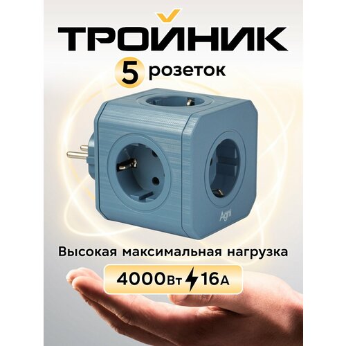 Разветвитель электрический на 5 розеток AGNI тройник с заземлением, защитными шторками, 16 A/4000 Вт, никелированные контакты, синий: сравнение цен, характеристики, фото, актуальное наличие и цены.