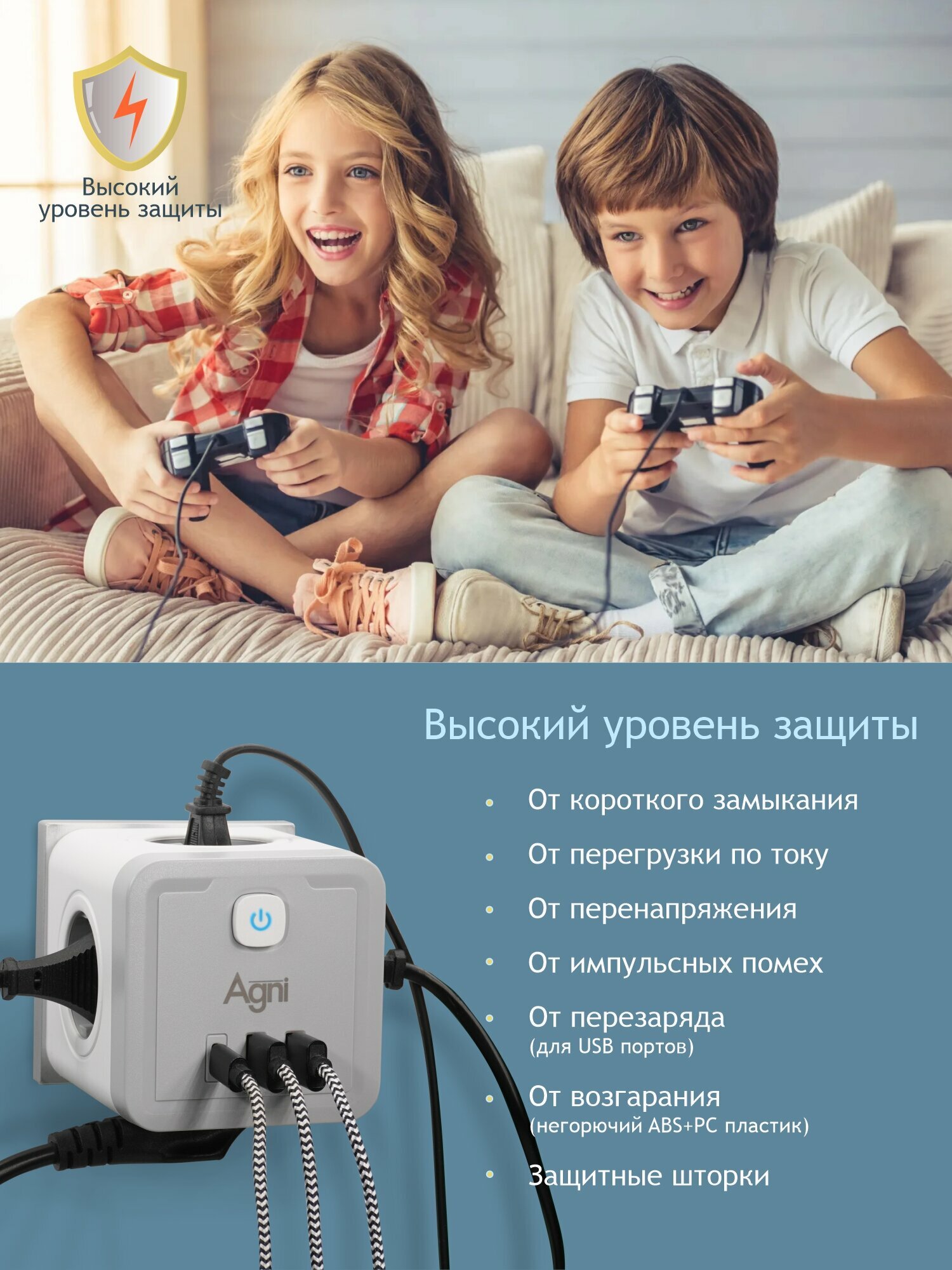 AGNI TP-WJ3U4E-C — это надёжный, функциональный разветвитель, созданный для тех, кто ценит качество, долговечность и уверенность в защите своей техники.