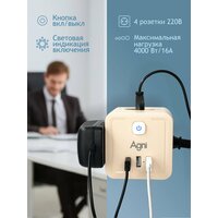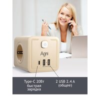 Разветвитель AGNI TP-WJ3U4E-C оснащён оптимальным набором портов и розеток, что делает его универсальным решением для современных пользователей: