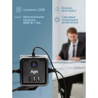 Тройник для розетки AGNI, защита от перегрузки, 4 гнезда, 2 USB, TYPE C, быстрая зарядка