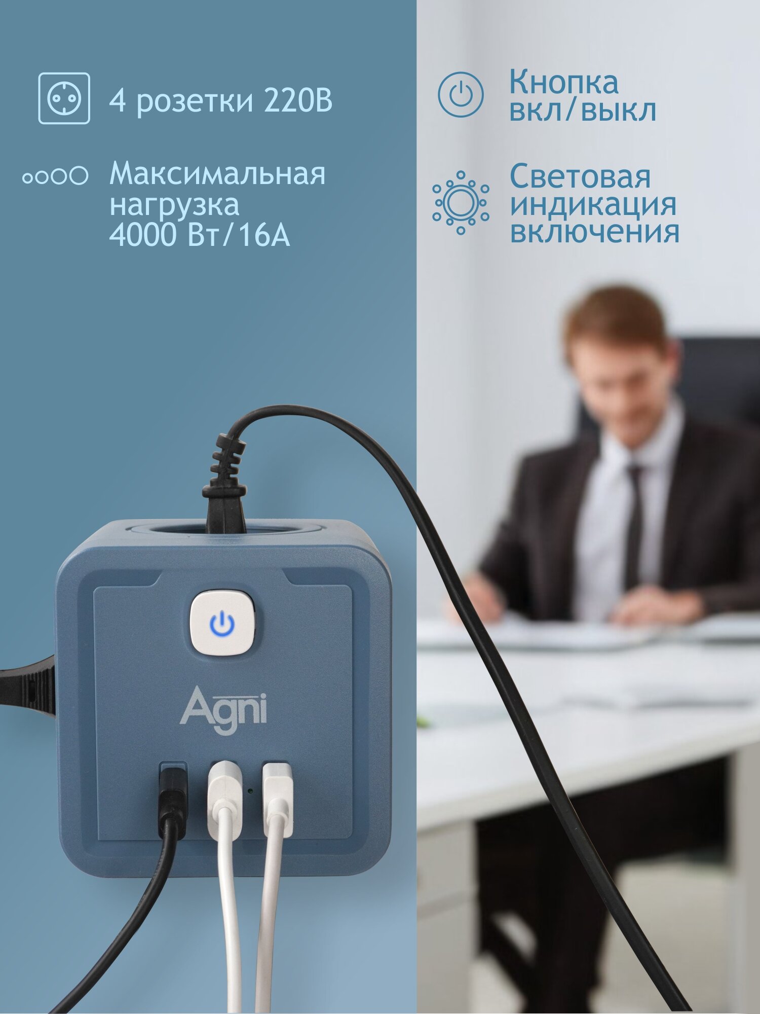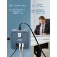 Купить Разветвитель для розетки AGNI, 4 розетки, 4000Вт, 3 USB-порта, TYPE C, с заземлением с доставкой по всей России.