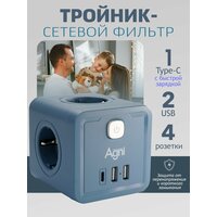 Разветвитель для розетки AGNI, 4 розетки, 4000Вт, 3 USB-порта, TYPE C, с заземлением: сравнение цен, характеристики, фото, актуальное наличие и цены.
