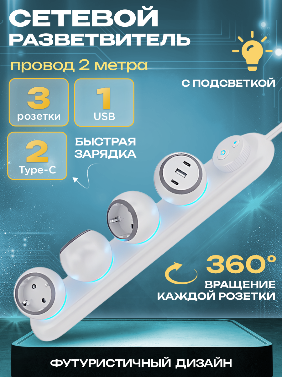 Разветвитель сетевой Suoma E48, с подсветкой, с удлинителем, 2 м: сравнение цен, характеристики, фото, актуальное наличие и цены.