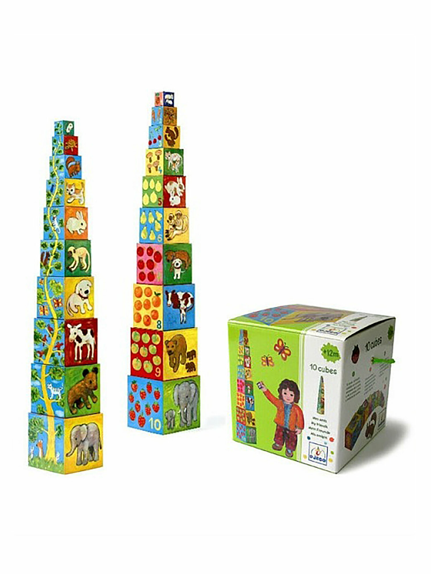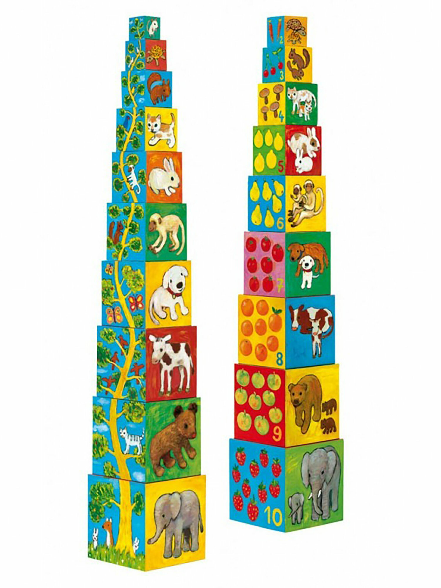 Развивающая игра кубики - пирамида Djeco 10 my friends blocks Мои друзья