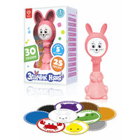 10 режимов; игрушка-погремушка воспроизводит: 11 стихов, 10 знаменитых мелодий в подборке таких композиторов как В.А. Моцарт, П. И. Чайковский и др., 17 детских песен, 5 видов белого шума, 40 звуков животных, 18 сказок, режим погремушки (72 рингтона), считает от 0 до 100 и называет 9 цветов на русском и английском языках; в комплекте 9 цветных карт для распознавания цветов; силиконовые ушки-грызунки; диаметр карточек 8.5 см; в дизайне игрушки возможны изменения